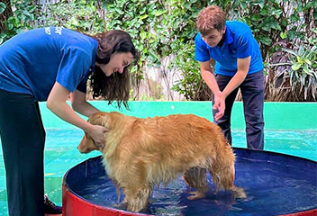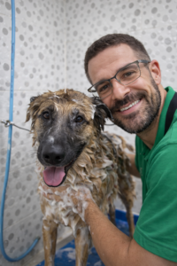 Higiene com cuidado, manejo respeitoso e atenção ao bem-estar do seu cão durante todo o processo.